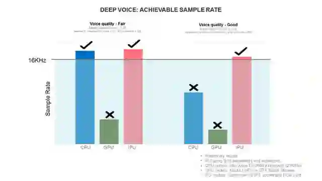 下表展示了 Deep Voice 生成算法在 IPU 上与其他平台(CPU、GPU)性能对比的结果: