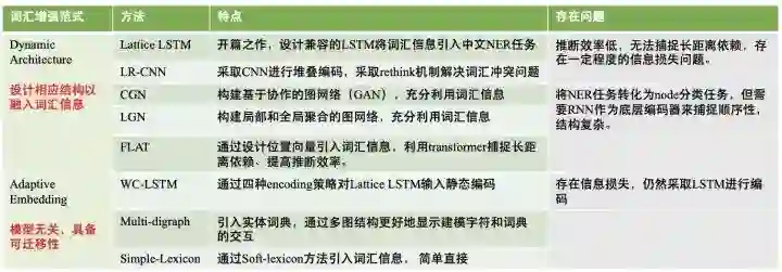 近年来,针对中文NER如何更好地引入词汇信息,无论是Dynamic Architecture还是Adaptive Embedding,这些方法的出发点无外于两个关键点: