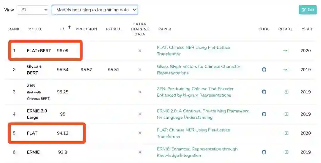 近年来,引入词汇信息逐渐成为提升中文NER指标的重要手段。ACL2020中一篇来自复旦大学邱锡鹏老师团队的 FLAT: Chinese NER Using Flat-Lattice Transformer 刷新了中文NER任务的新SOTA。