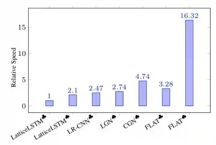 由上文分析,Lattice-LSTM采取的RNN结构无法捕捉长距离依赖,同时引入词汇信息是有损的,同时动态的Lattice结构也不能充分进行GPU并行。