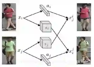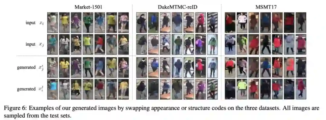 不需要额外标注(如pose,attribute,keypoints等),就能生成高质量行人图像。通过交换提取出的特征,来实现两张行人图像的外表互换。这些外表都是训练集中真实存在的变化,而不是随机噪声。