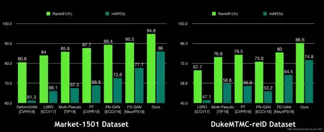 本文生成了高质量的行人图像,将其与行人重识别模型融合,来达到高质量行人生成图像辅助行人重识别训练,提升行人重识别精度的目标。