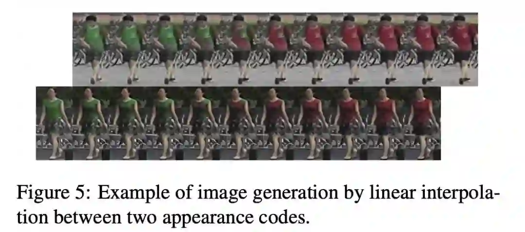 2.外表插值。网络是不是记住了生成图像的样子。故我们做了一个逐渐改变appearance的实验,可以看到外表是逐渐并且smooth地改变的。