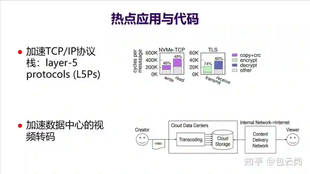 存在很多大量共性操作,比如加密解密等,于是直接在网卡上实现了一个针对 L5Ps 的加速器,大幅加速了网络包处理能力。另一个例子是这次疫情导致云计算数据中心