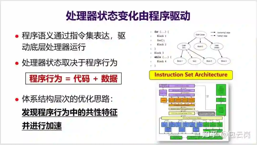 (见下面 PPT),而 CPU 体系结构层次的优化思路就是发现程序行为中的共性特征并进行加速。