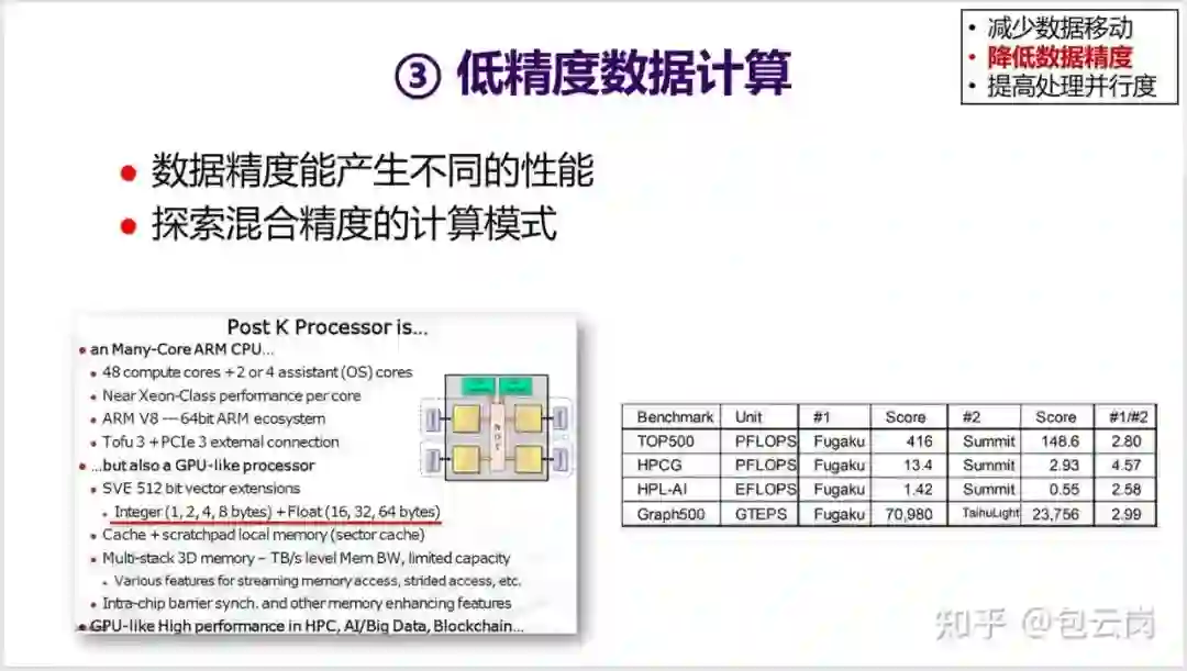 很多 AI 处理器都在利用这个思路进行优化,包括前段时间日本研制的世界最快的超级计算机 “富岳” 中的 CPU 中就采用了不同的运算精度。因此