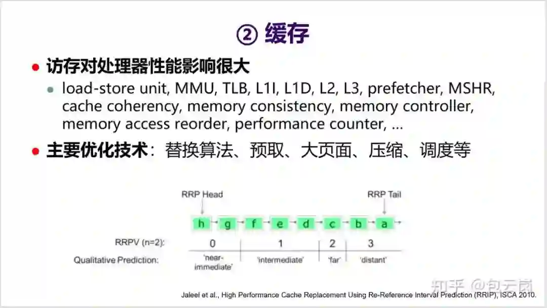 关于访存优化,也有一系列技术,包括替换、预取等等。这些技术到今天也依然是体系结构研究的重点,这里就不展开细讲了。