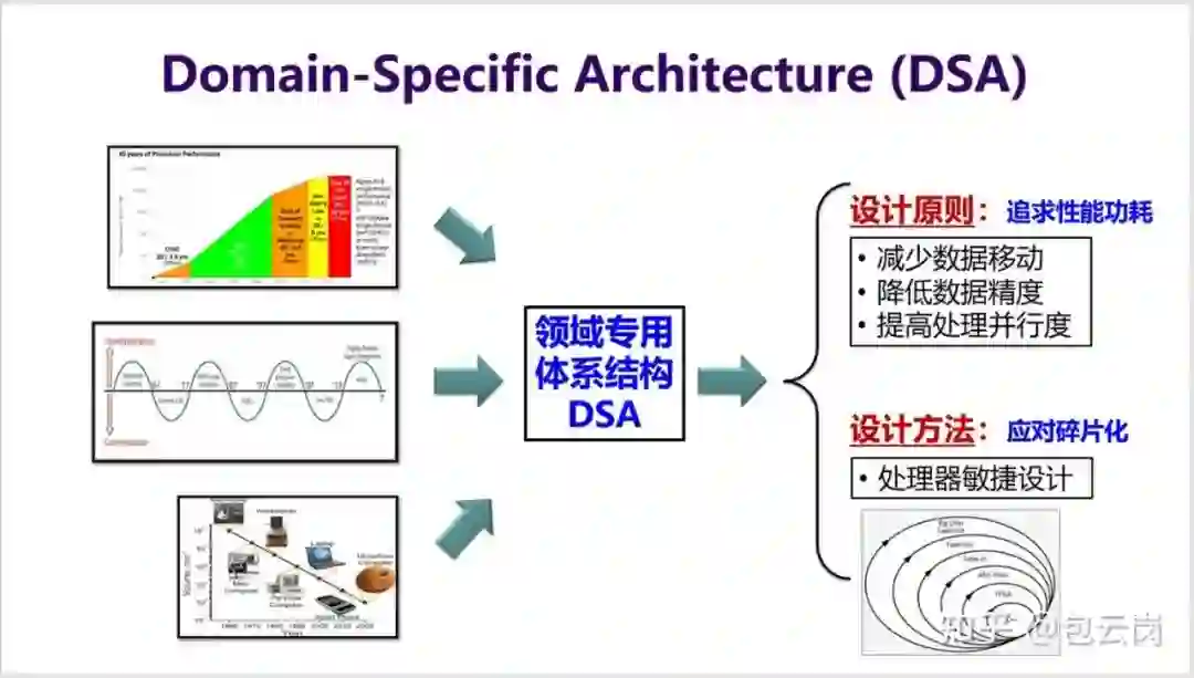 这三个定律都驱动计算机体系结构向一个方向发展,那就是「DSA」