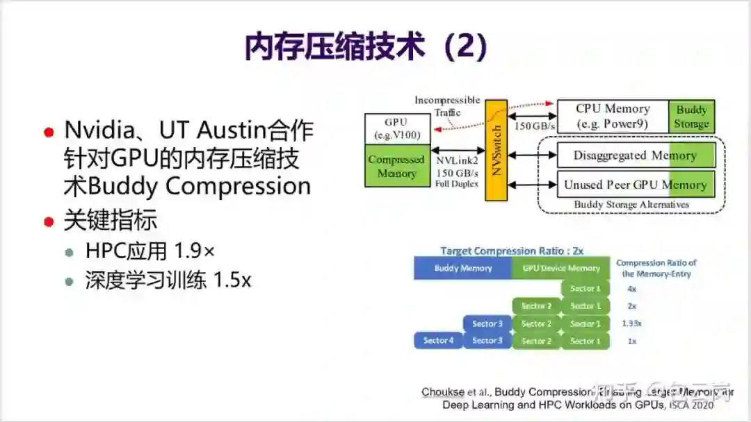 16. 英伟达也在研究如何在 GPU 中通过内存压缩技术来提升片上存储的有效容量,从而提高应用性能。