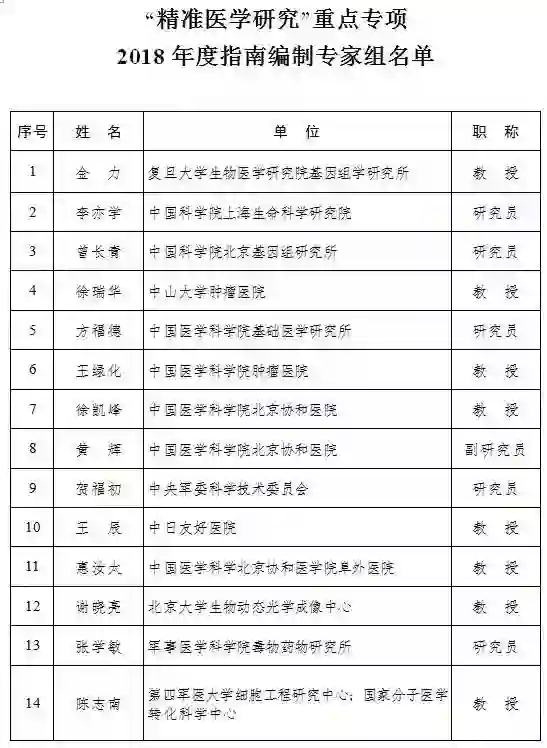 “精准医学研究”重点专项2018年度项目申报指南