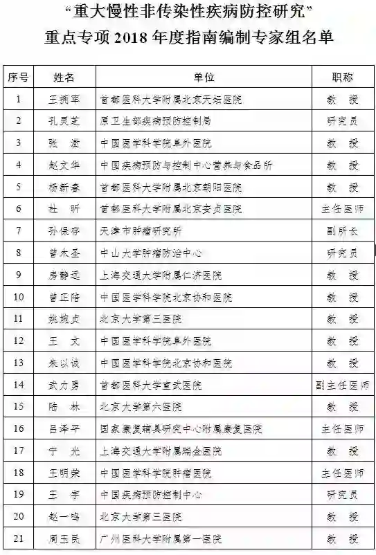 “重大慢性非传染性疾病防控研究”重点专项2018年度项目申报指南