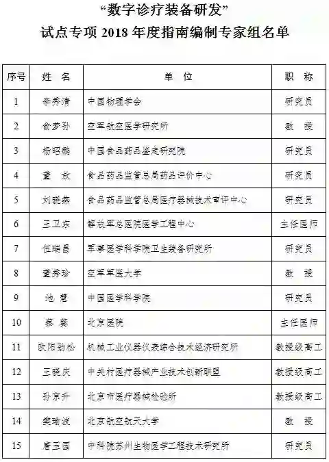 “数字诊疗装备研发”试点专项2018年度项目申报指南