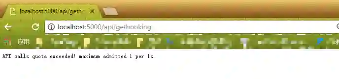 大家注意到我们在上面例子中通过RateLimitOptions节点配置了限流的相关设置,目前我们配置的是1s钟之内只允许对booking api访问一次,否则的话便停止继续转发至下游服务,我们通过测试就会发现当在1s内多次访问的时候,网关便会返回下面的信息: