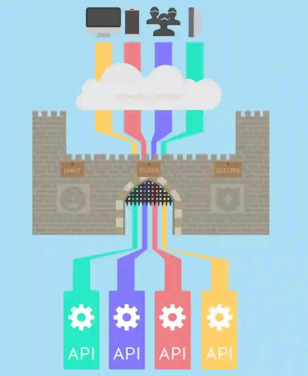 API网关是系统内部服务暴露在外部的一个访问入口,类似于代理服务器,就像一个公司的门卫承担着寻址、限制进入、安全检查、位置引导等工作,我们可以形象的用下图来表示: 外部设备需要访问内部系统服务时必须要通过我们的API Gateway,目的是为了隔离内部服务和外部访问来做统一的认证授权,限流熔断,请求聚合,负载均衡,日志记录,监控预警等 通用功能,就像是我们系统的防火墙一样,在任何外部请求访问系统时都必须经过防火墙的验证。