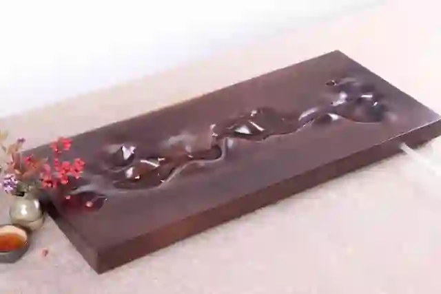 “设计如何让生活变得更美,一直是我探索的社会课题。该茶盘以自然江山为灵感,通过写意的方式,把山河微缩在方寸之地的茶盘上,从左至右,流经高山、盆地、丘陵、平原,一路走来蜿蜒曲折,有上游、中游、下游的形态塑造与地形落差。品茶间,洒落的茶水流入山谷,此时万里河山尽收眼底。”