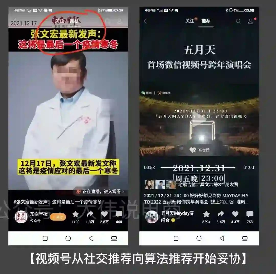 这意味着某种程度上,视频号主打的社交推荐并没有带来预期的结果或者不能满足视频号要更快的发展需要,还是要靠依赖更懂人性的算法推荐。