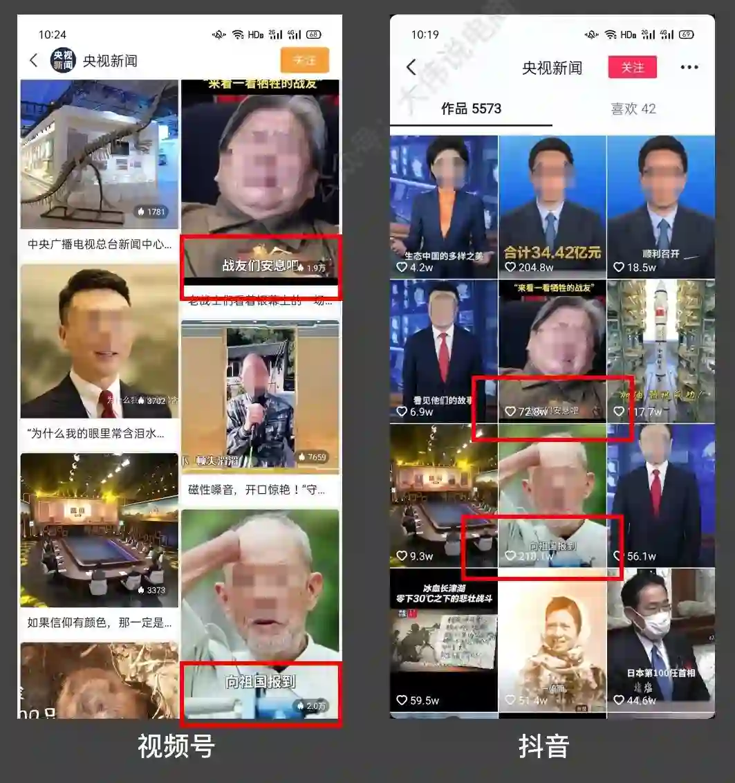 我在《我为什么不爱刷视频号》中举过一个例子,哪怕是像央视新闻这类官媒,在抖音与视频号的数据也可谓不啻云泥。