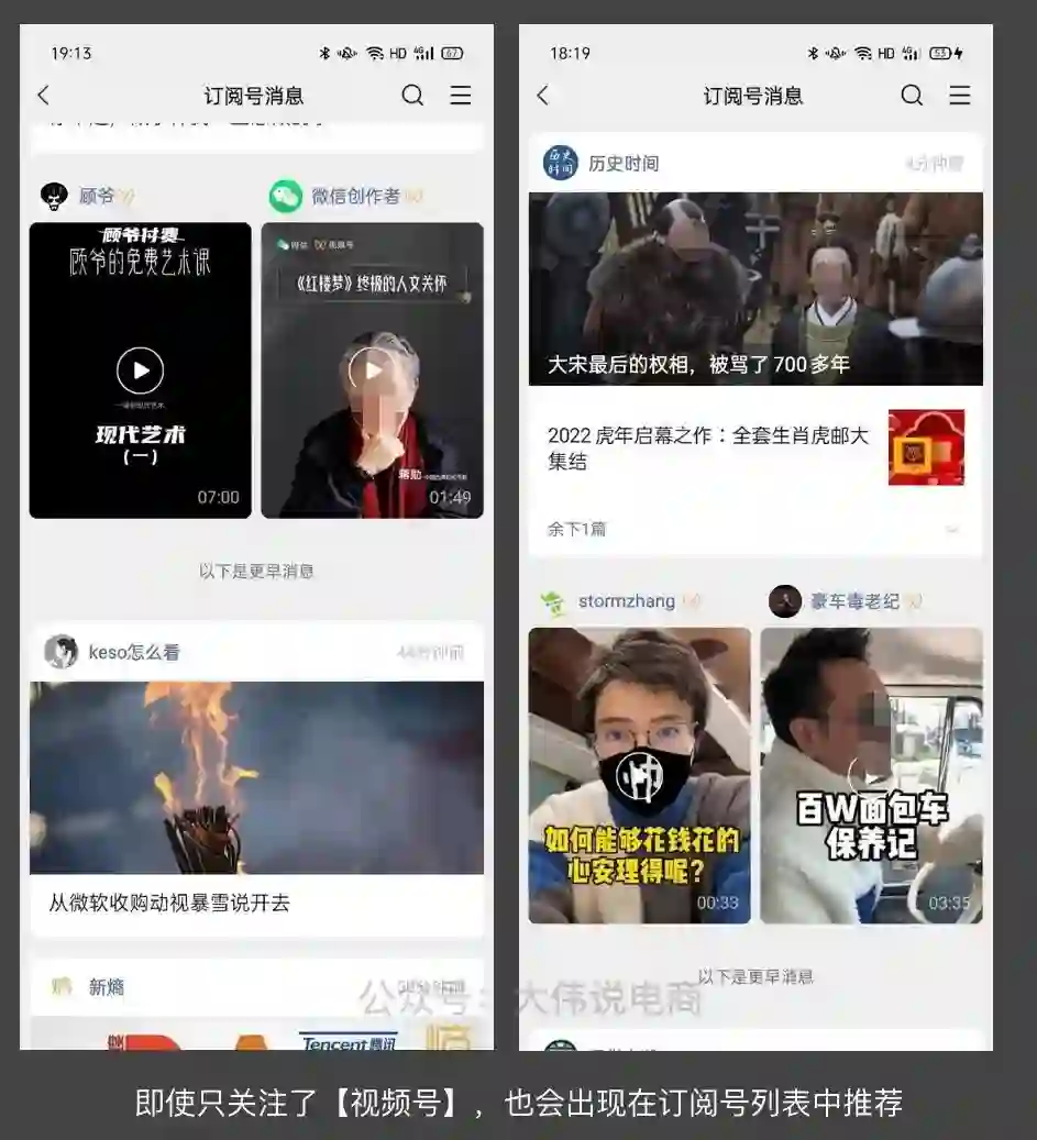 目前,在订阅号列表中,已全量上线视频号推荐(有一个半月了吧)。不知道老铁们都是什么感觉?