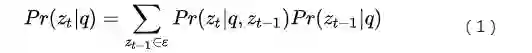 此外,理解上式所表示的模型的方法是,第二项检索的事第t跳的问题所请求的正确类型的提及,第一项则基于与