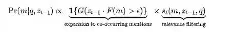 相乘,从而将实体扩展为同时出现的提及。对于相关性评分,我们将在