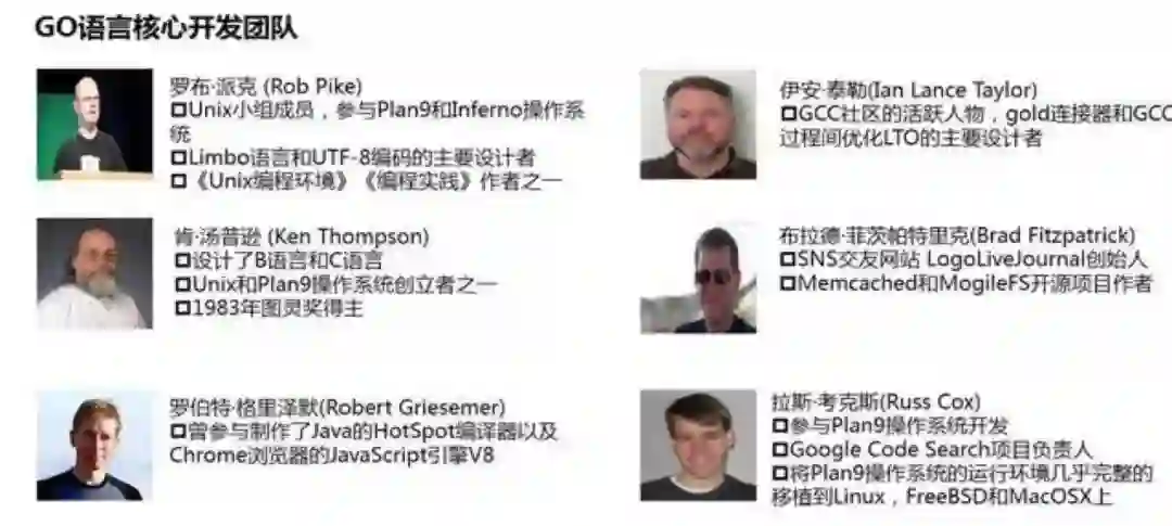 G公司不差钱不缺人,Go团队更是群星荟萃、大咖云集,不废话,直接上图: