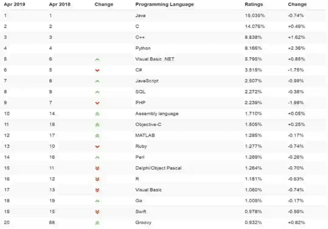 一年多排名下滑,铁打Java、C/C++,流水的编程语言。