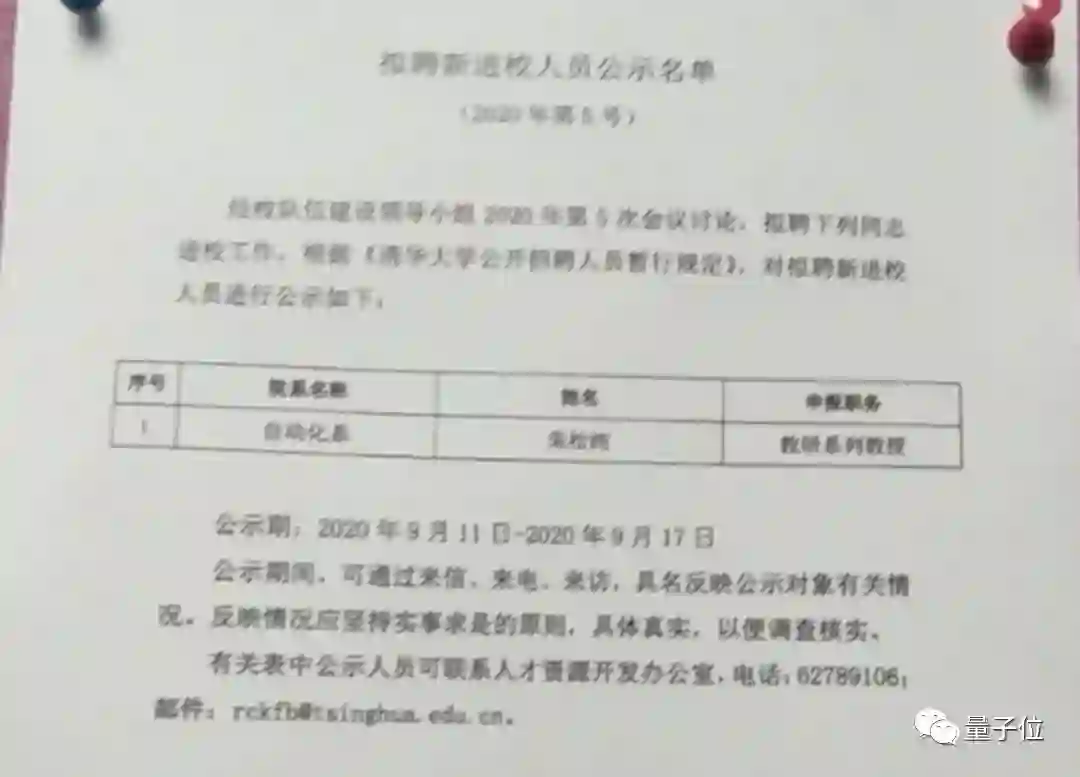 9月中旬,一张清华大学《拟聘新进校人员公示名单》曝光,其中显示,朱松纯教授受聘清华大学自动化系教研系列教授。