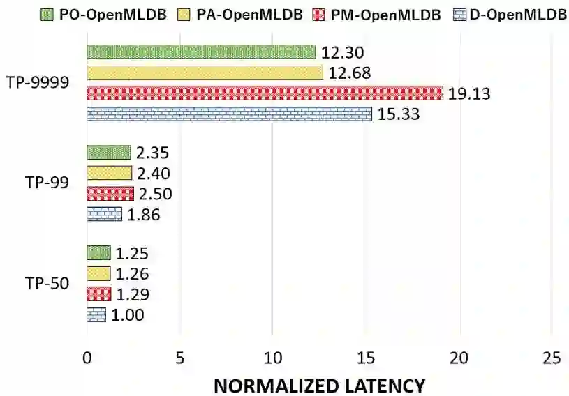 实验显示,相比较于基于 DRAM 的 OpenMLDB,基于持久内存的 OpenMLDB 可以减少 19.7% 的长尾时延,缩短 99.7% 的恢复时间,与此同时,降低 58.4% 的成本。