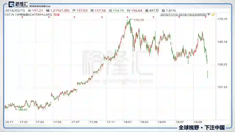 前天晚上美国的制造业巨头卡特彼勒发布三季度业绩,Q3业绩很好,但是给了悲观指引,结果股价扑街了7个多点。另外还有3M公司也是业绩不及预期,跌了4个多点。