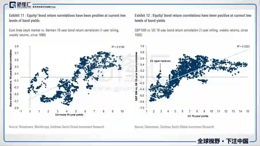 高盛之前出过一份报告,认为美国十年期国债收益率低于某个界限值(大约在3%左右),股票和债券价格负相关的,超过该值以后股票价格和债券价格为正相关。债券价格和国债收益率是反向关系,所以含义就是国债利率超过3%的情况下,股市有向下的压力。