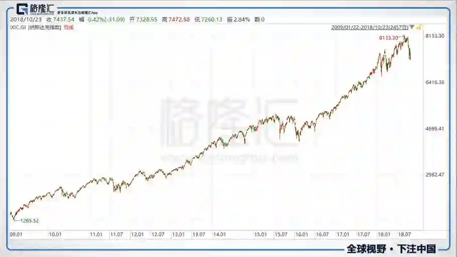 从2009到现在,美股开启了一波为期10年的大牛市,纳斯达克从2009年最低点1265一路涨到7437点,标普500从667一路涨到2741,分别涨了487%和311%。