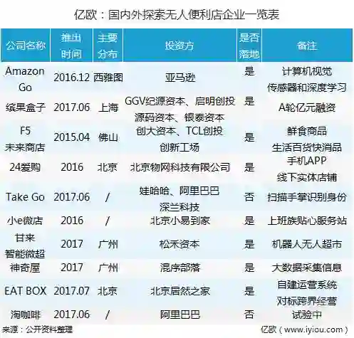 无人便利店似乎是站在了风口之上,本次亿欧盘点了国内外共十家正在试水无人便利店的企业,其中有阿里无人零售、亚马逊推出的Amazon Go无人零售便利店,也有最近获得融资的一些初创公司。