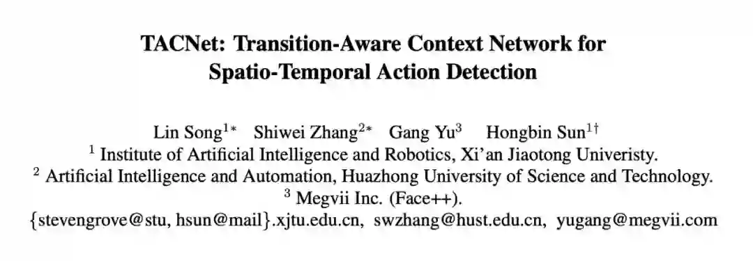论文名称:TACNet: Transition-Aware Context Network for Spatio-Temporal Action Detection