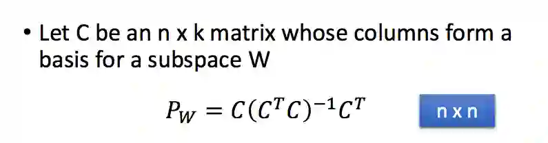 如果对于无解的线性方程组Ax=b,我们退而求其次,在A的列所张成的空间中找一个距离b最近的向量,其实就是b在A上的正交投影。