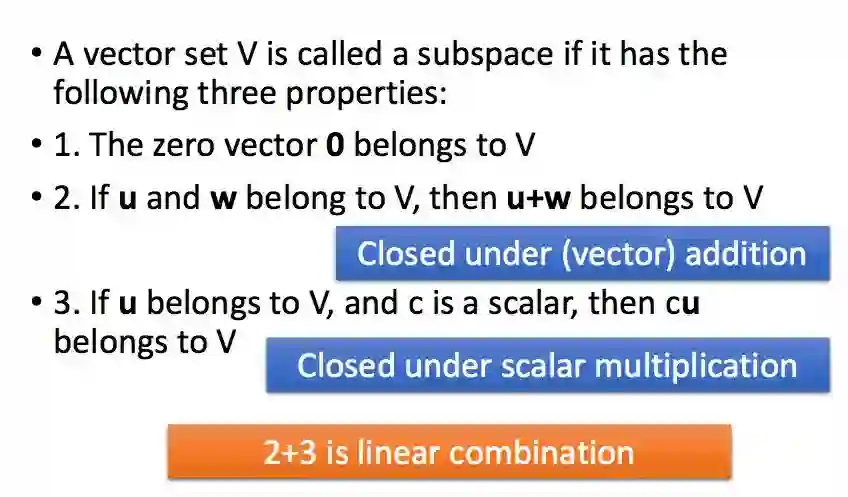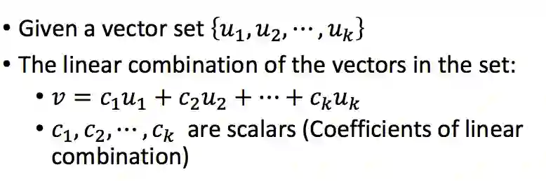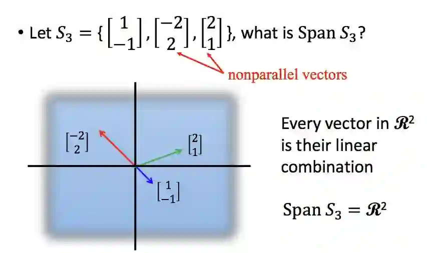 对于一个向量集S,其向量的所有线性组合组成的向量集V,称为Span(S),也被称为S张成的空间。