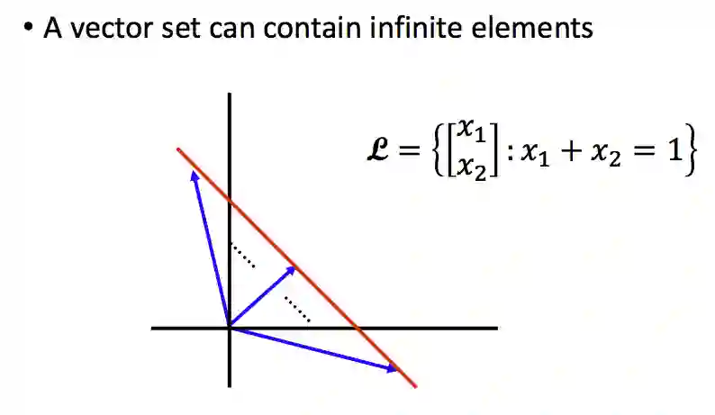 如果S中包含一个非零向量,那么其张成的空间是一条直线: