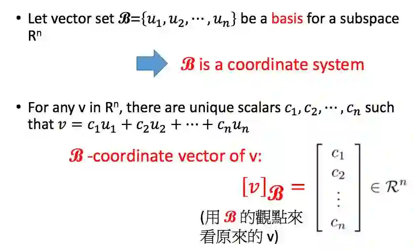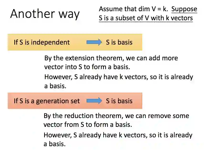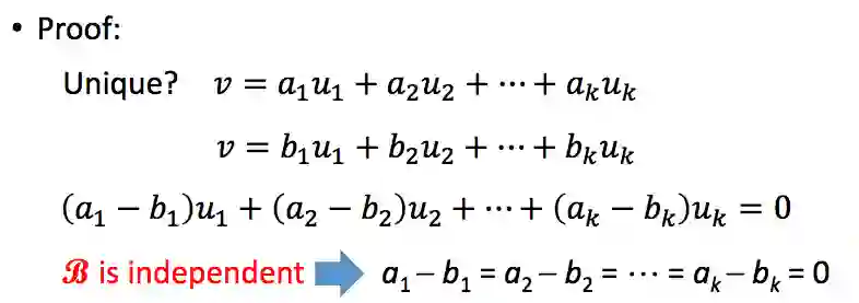 线性相关还有另一种定义,即可以找到一组非全零的标量,使得线性组合为零向量。