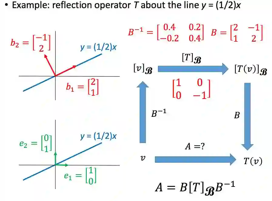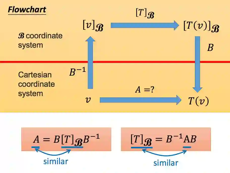 所以我们在直角坐标系下的这个变换矩阵A也就找到了,此时我们可以称两个坐标系下的变换矩阵是相似矩阵(Similar matrices):