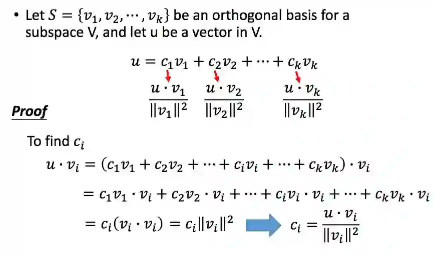 如果一个基是正交的,那么我们可以很快的求解出子空间中一个向量的坐标: