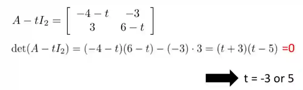 那么如何计算一个矩阵的特征值呢,这里要使用特征多项式(Characteristic Polynomial),特征值是特征多项式的根。即: