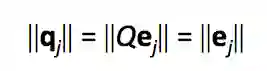 首先,我们很容易知道,对于一个正交矩阵Q,QT=Q-1,根据下面的推导可以得到正交矩阵一定具有范数不变性: