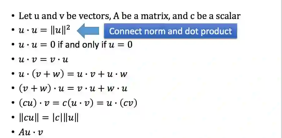 两个向量是正交的(Orthogonal),如果两个向量的点积是0,那么零向量和任何向量都是正交的。