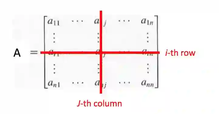 如果矩阵有m行和n列,我们就说矩阵的大小为m*n,如果m=n,我们称为方阵(square matrix)。