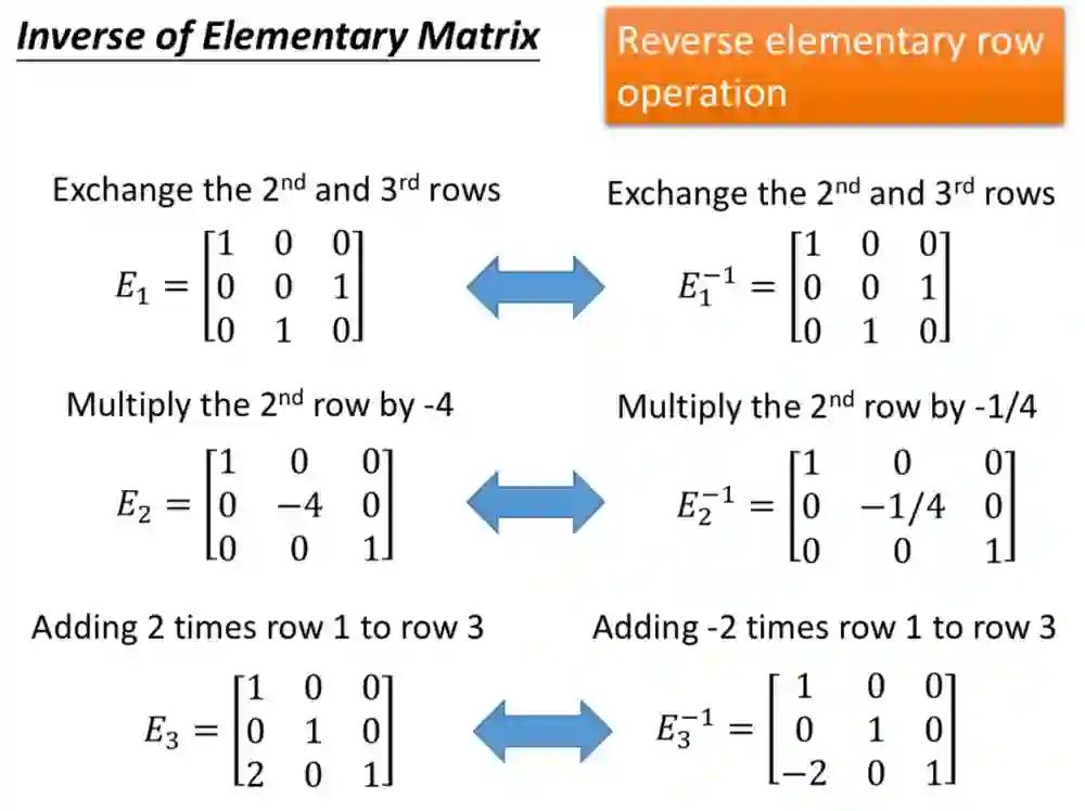 我们之前介绍了三种初等行变换,其实初等行变换都可以用矩阵相乘表示,这种左乘的矩阵被称作初等矩阵(Elementary Matrix)。即单位矩阵经过一次初等变换得到的矩阵。