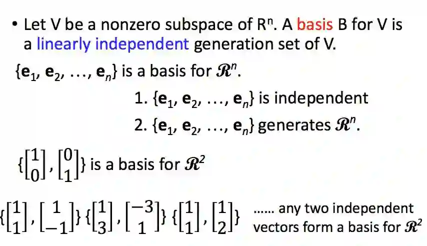(6)m个线性无关的m维向量可以张成整个Rm空间,Rm空间中多于m个向量的向量集一定线性相关