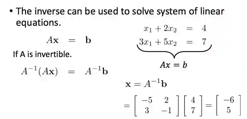 逆矩阵可以用来求解一个线性方程组,但这种方法要求A是一个方阵,同时在计算上并不是十分有效率的: