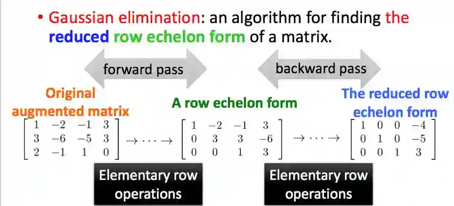 通过将增广矩阵化简为简约行阶梯形式,进而求解线性方程组解的方法,我们称之为高斯消元法(Gaussian Elimination)