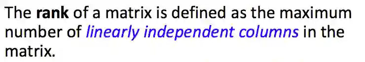 矩阵的秩(Rank)定义为线性无关的列的最大数目: