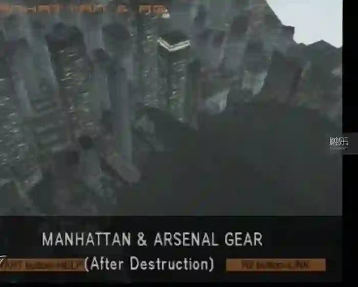 《MGS2》正式版中被删除的“玄武”冲上曼哈顿岛,撞毁世贸双塔的过场画面