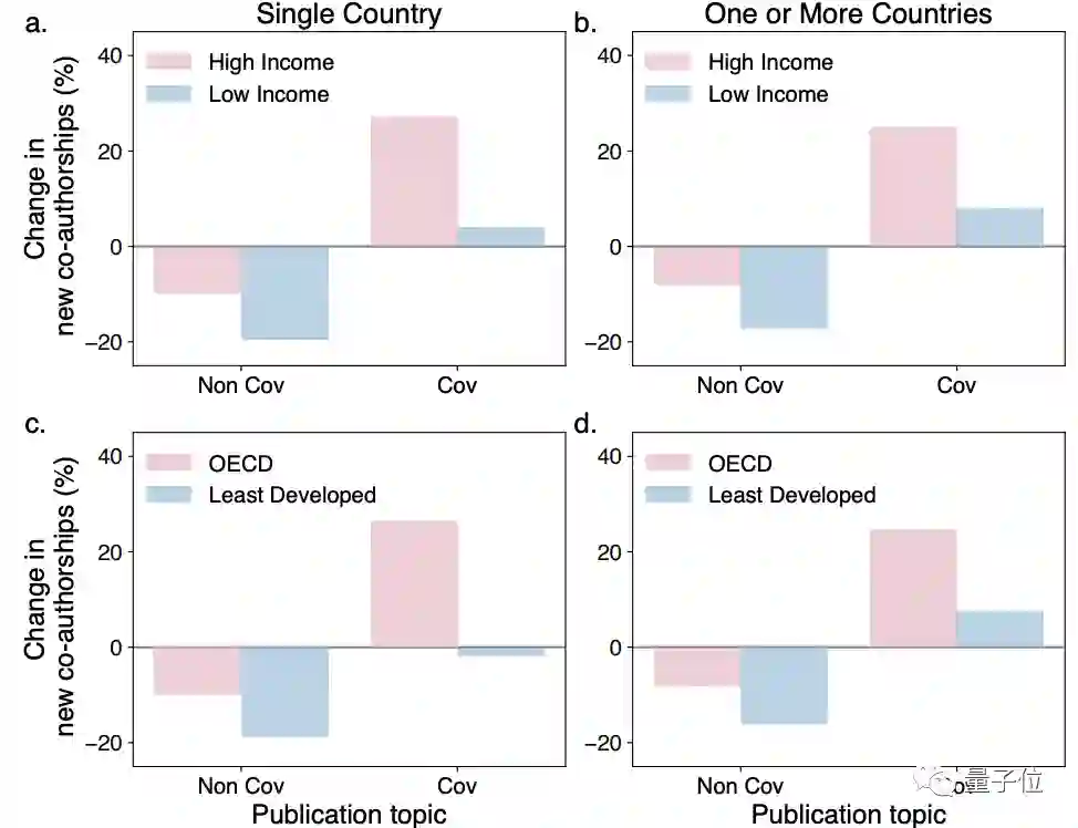 上述这些数据主要来自于美国和欧洲地区,而低收入和发展中国家的合著数量下降幅度更大: